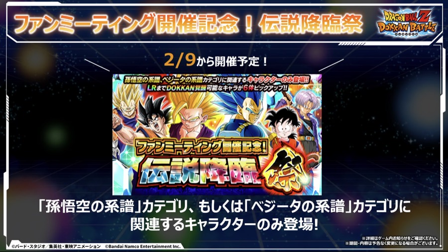 ドッカンバトル11周年も2026年1月29(木)から開催されます。過去の周年と同じなら第1弾~3弾,EX弾まで開催されそうです。