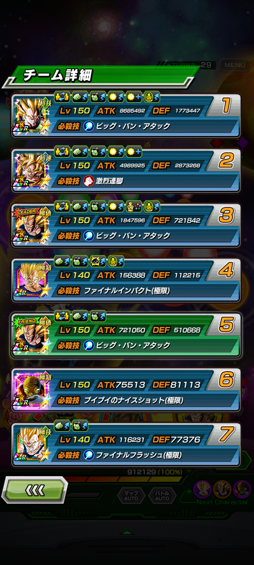 不具合じゃなかったらごめんなさいなんですけど、10周年の赤のスーパーサイヤ人ゴットブルー進化のベジータは待機モーション動いてるのに6周年の極限紫のスーパーサイヤ人ゴットブルー進化ベジータの方は待機モーションが動かない状態なんですけど、あえてだったら、すみませんん。